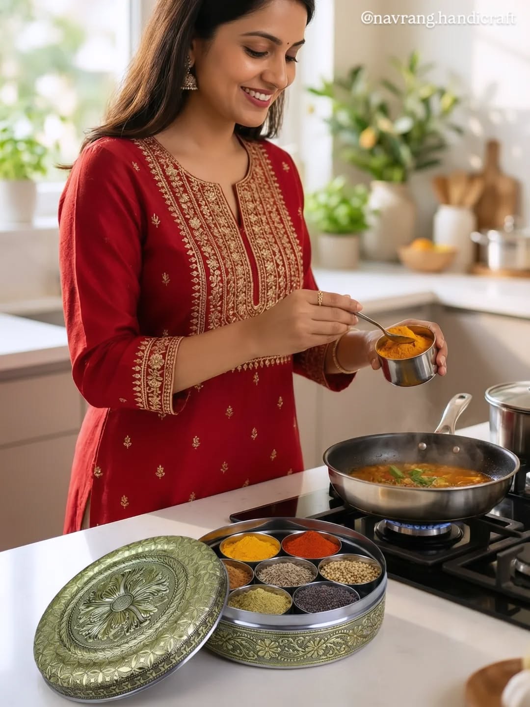 - Traditional Design: Classic masala dabba for Indian kitchens.