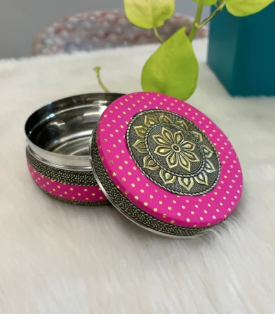 Meenakari Floral Steel Utility Container 300 ml | Decorative Kitchen Dabba