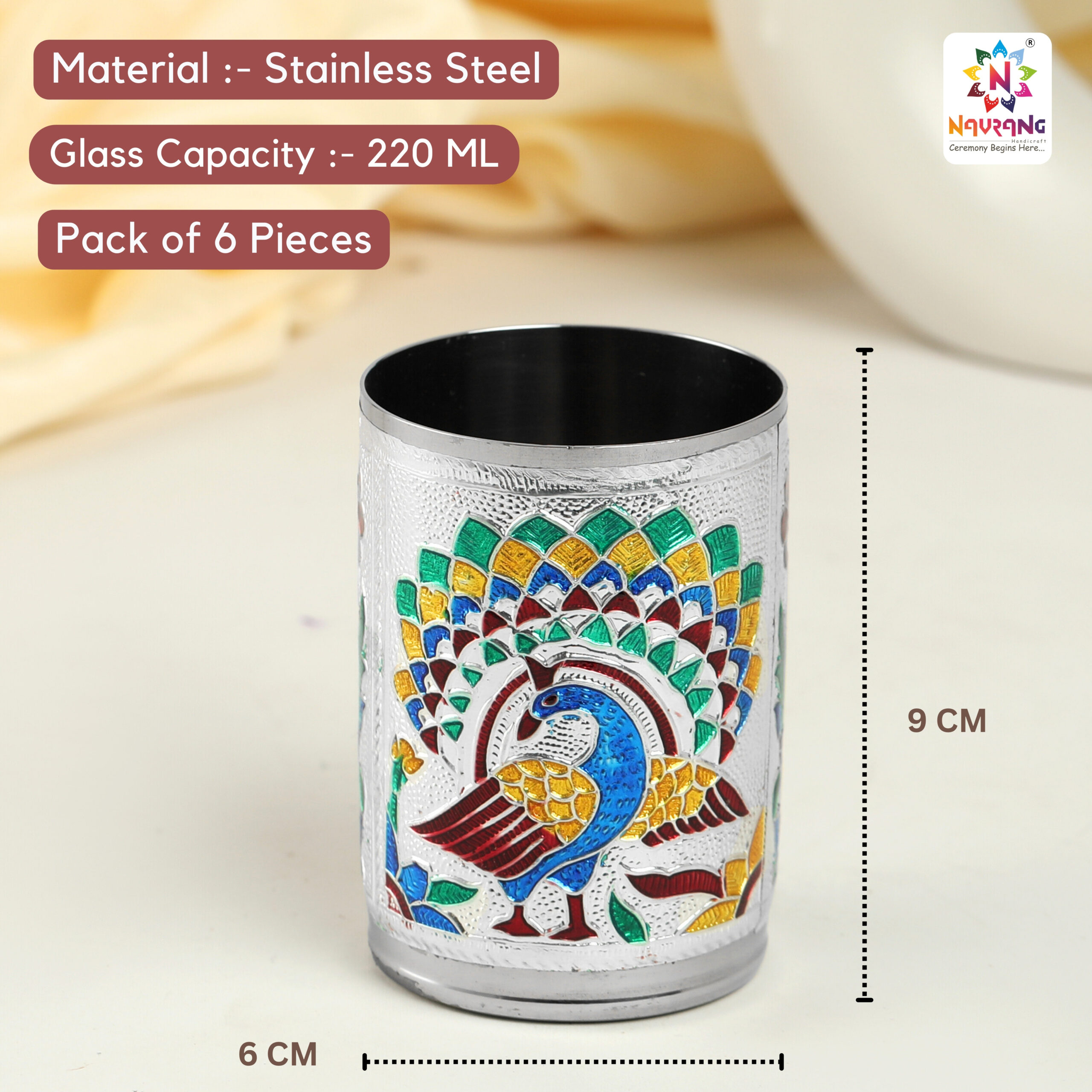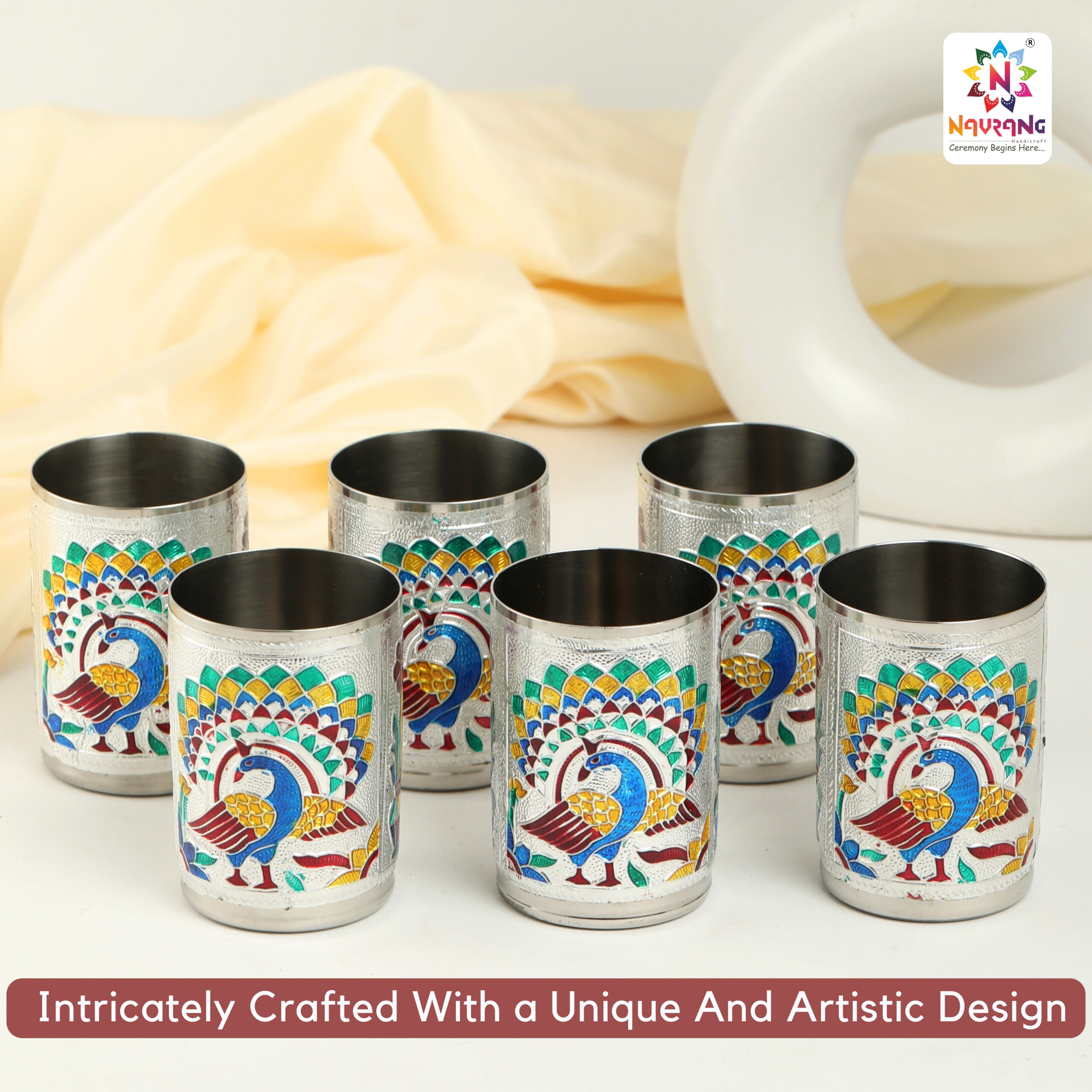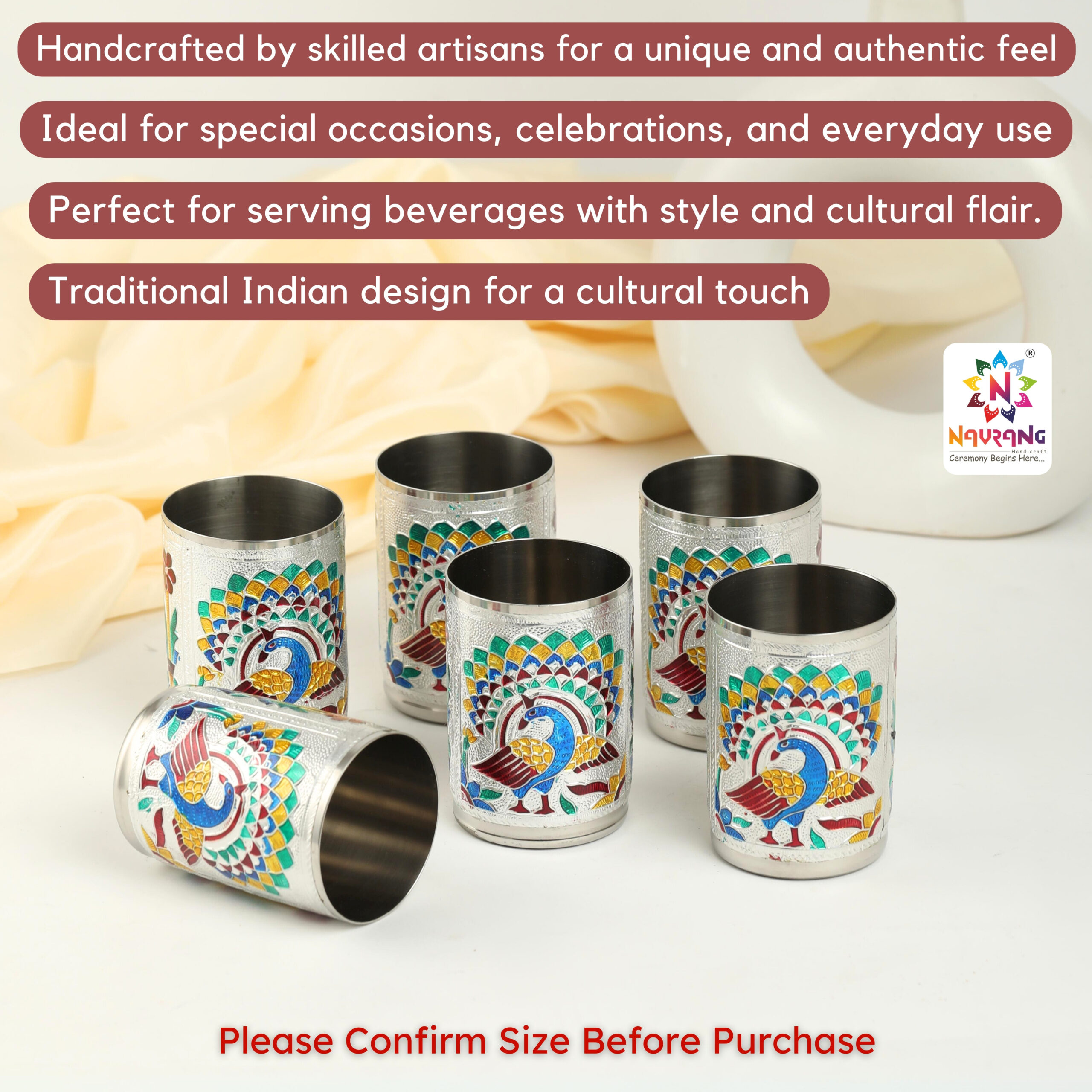 Decorative Peacock Steel Glass Set | Stainless Steel Tumblers for Water & Juice