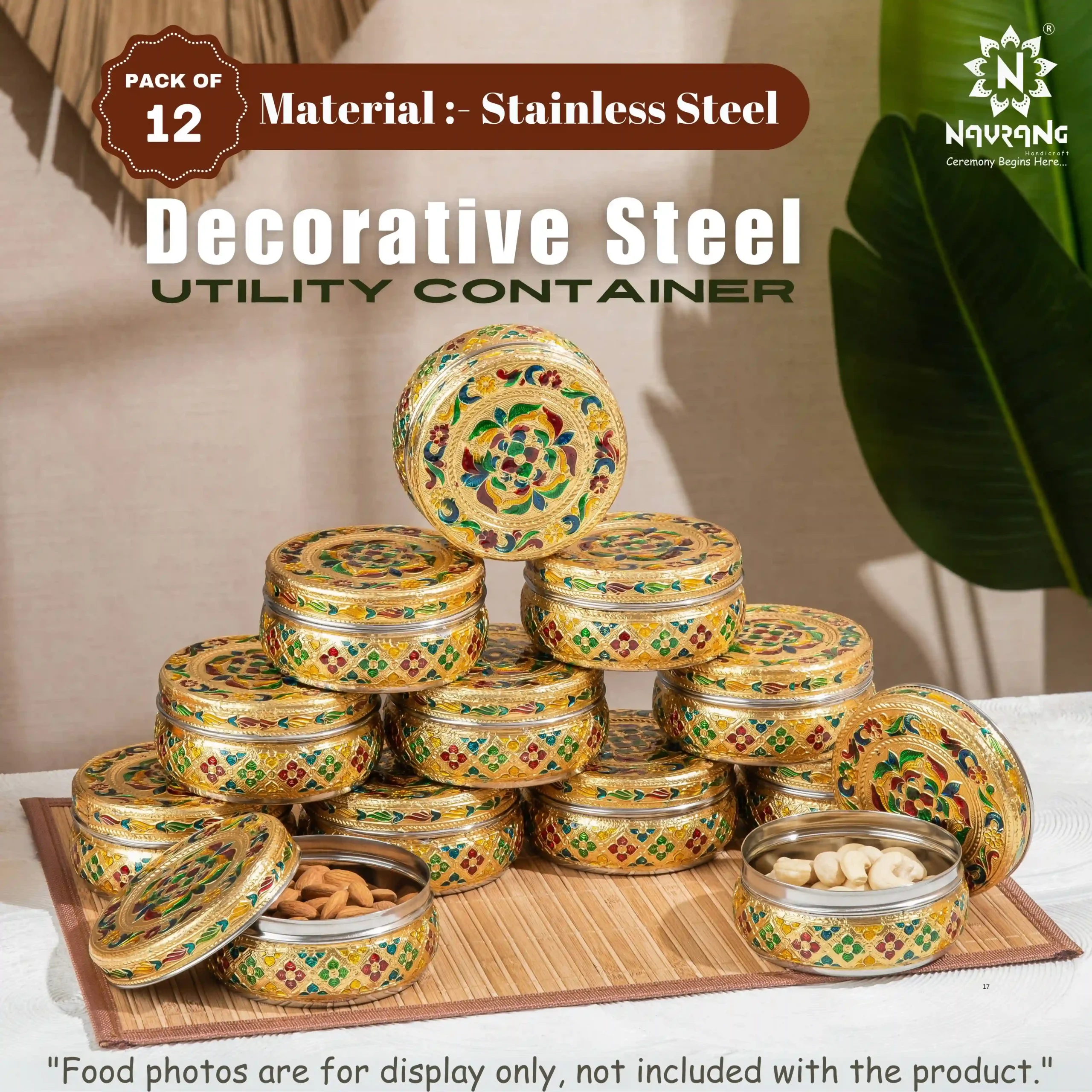 Product Includes :- 1 Meenakari Floral Steel Utility Container (300 ml)