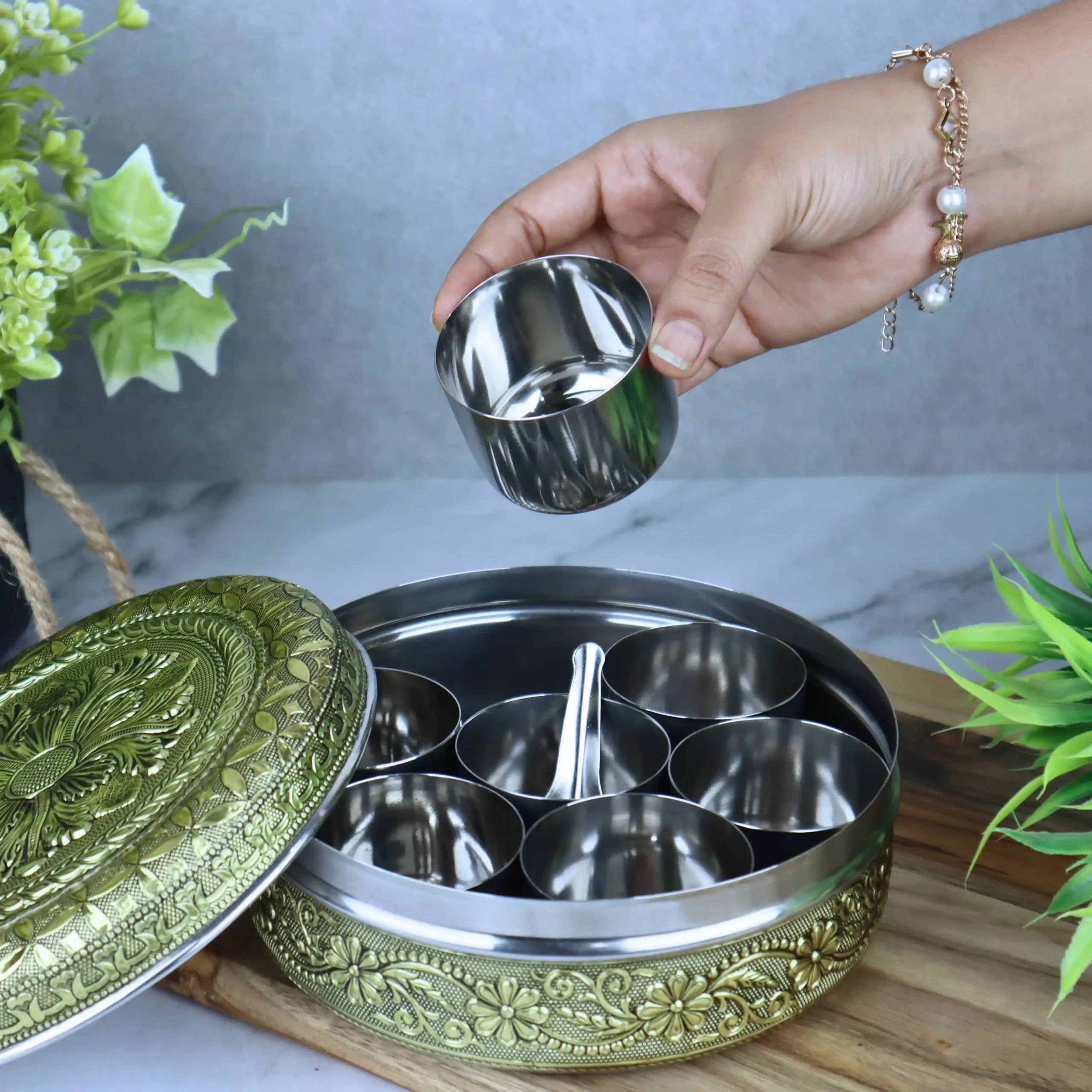 This golden flower masala box can also be used in different ways: