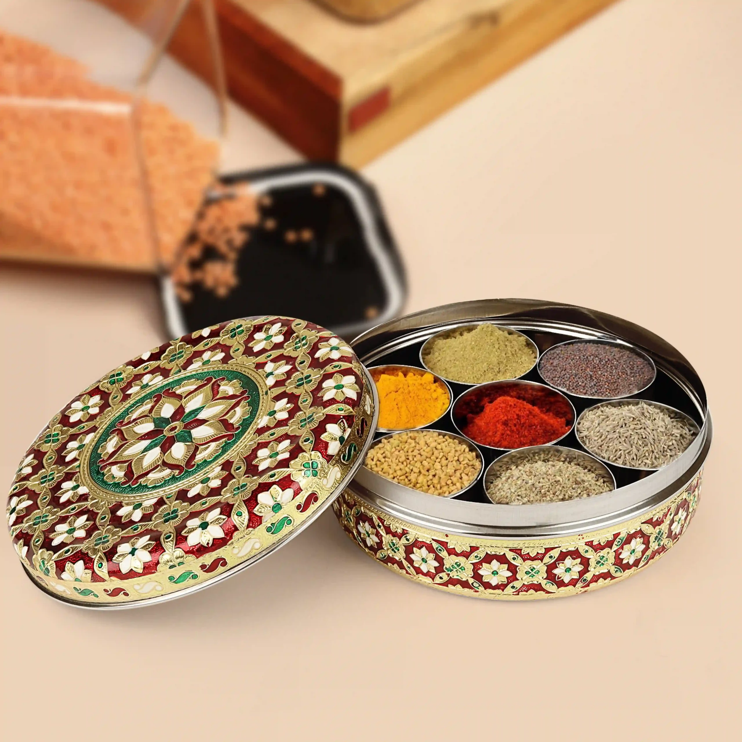 - Traditional Design: Classic masala dabba for Indian kitchens.