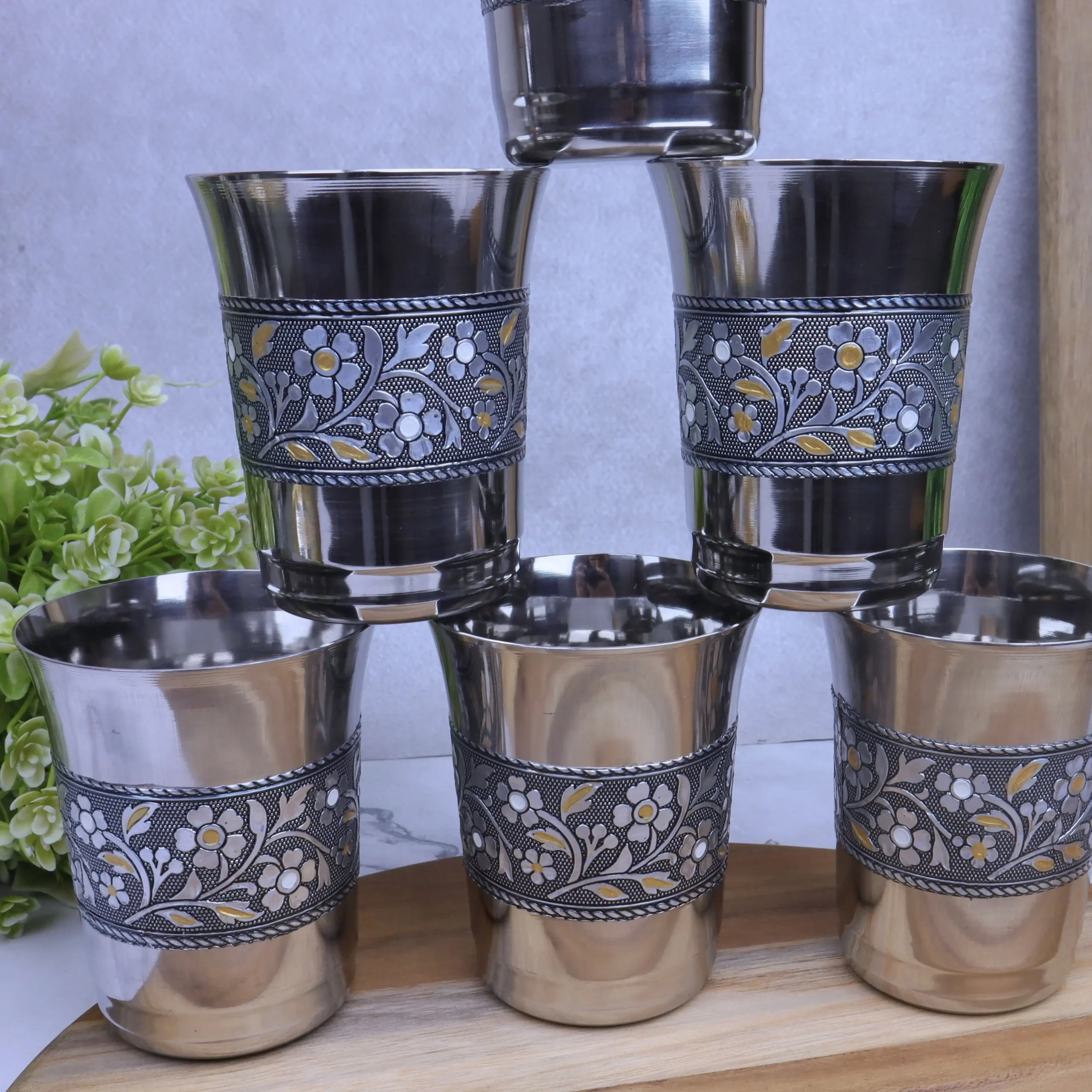 If you are looking for durable, hygienic, and traditionally styled stainless steel glasses, this oxidized Meenakari glass set of 6 is an excellent choice for home use or gifting.