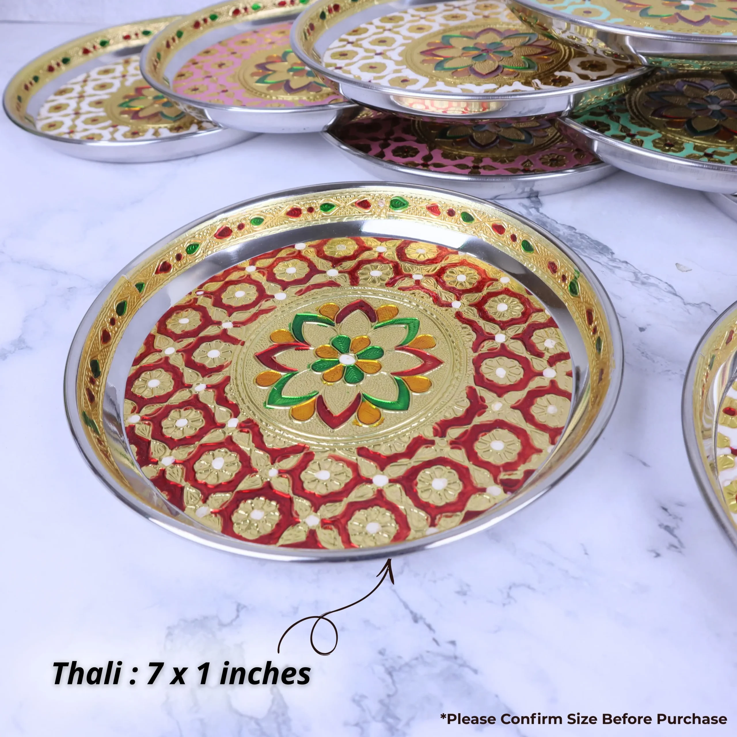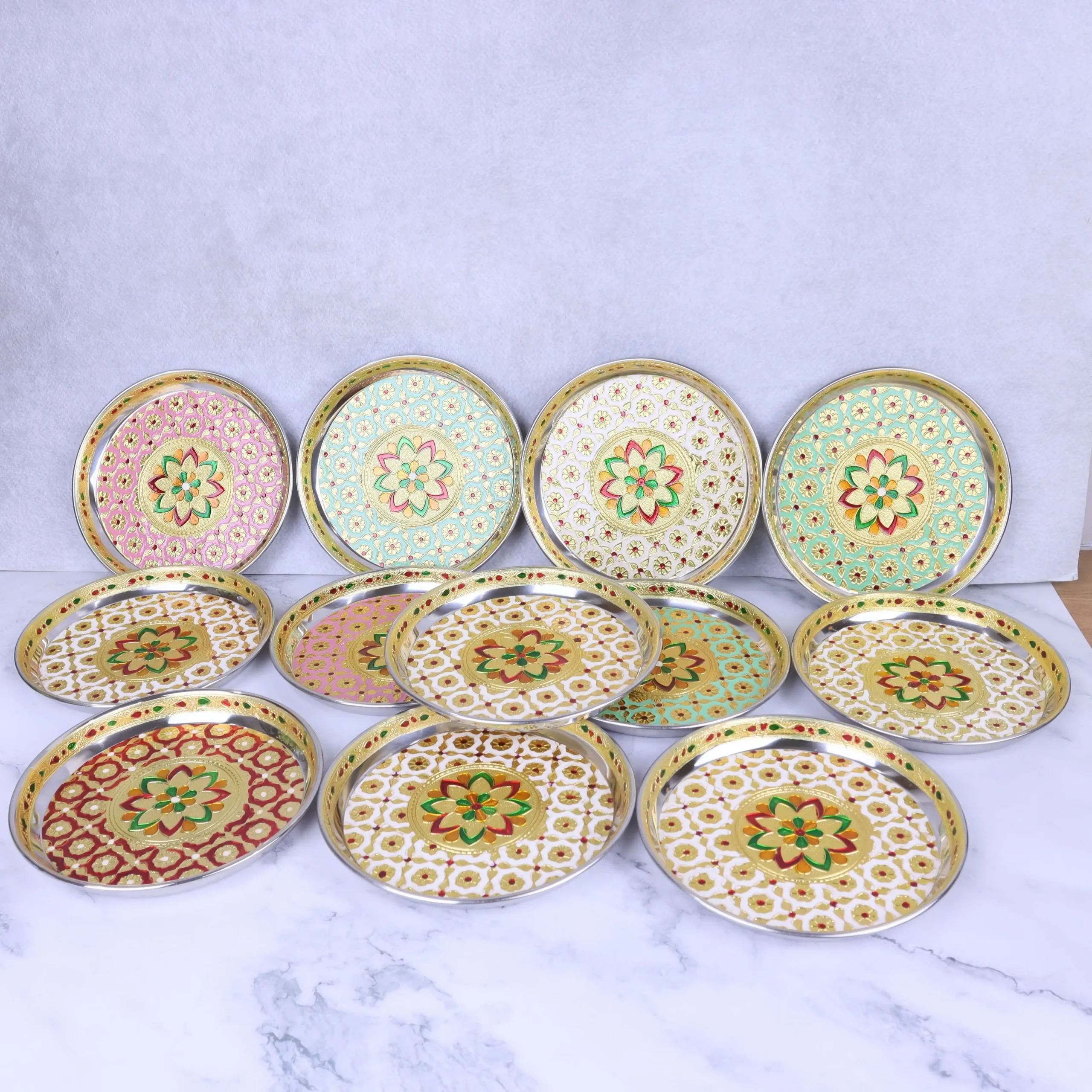 If you are looking for a hygienic, durable, and traditionally designed pooja plate set for mandir use, events, or gifting, this Meenakari stainless steel set of 12 is an excellent choice.